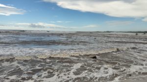 Los daños en este punto de playa se pueden observar a partir del embarcadero donde la corriente del agua se «llevó» un restaurante.