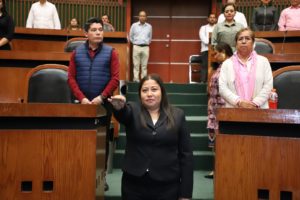 En esta jornada también rindió protesta ante el Pleno América Olmedo Navarro como diputada integrante de la LXIII Legislatura, en suplencia de la diputada Yoloczin Domínguez.
